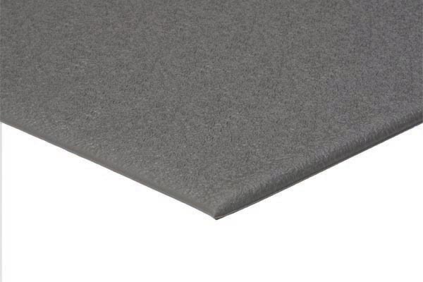Static-dissipative anti-fatigue mat with beveled edges for increased safety.