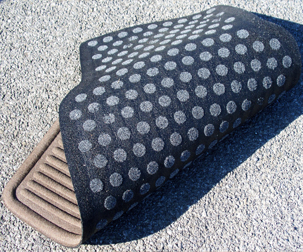 Unique environmentally-friendly car mats made from recycled scrap tires and plastic bottles.