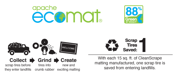 Outdoor mat with extreme traction surface, made from 88% recycled materials.