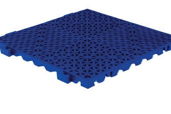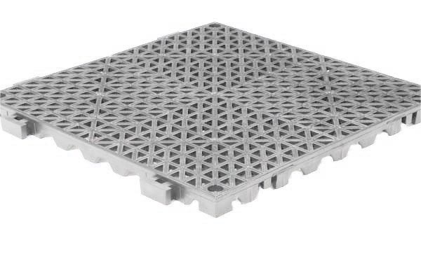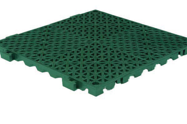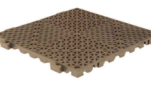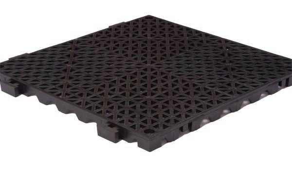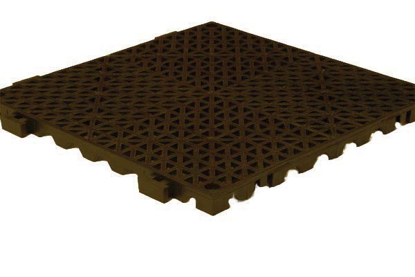 12" x 12" Modular tiles made from recycled plastics offer drainage and ease of installation. New softer formulation provides added comfort and durability.