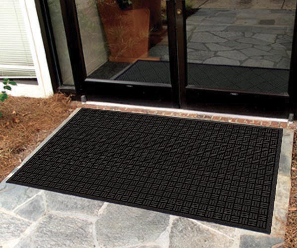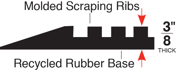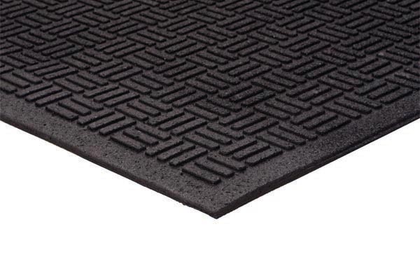 Durable recycled rubber outdoor mat using 96% recycled materials.