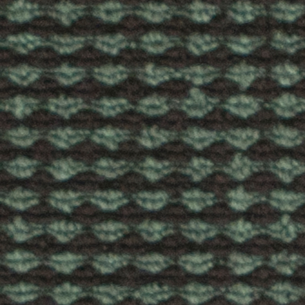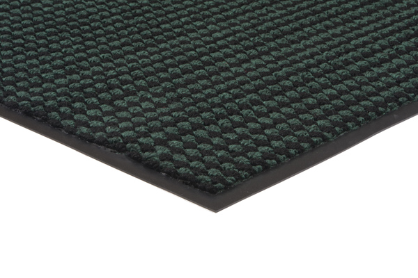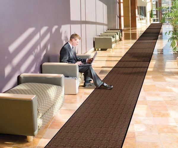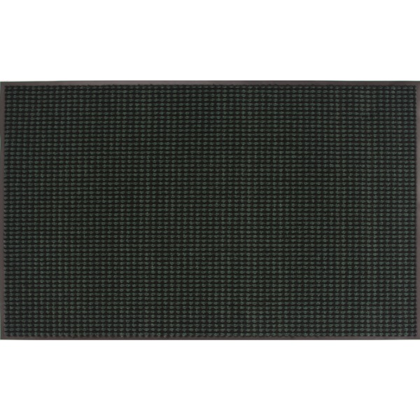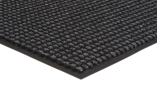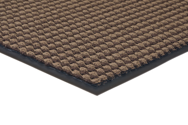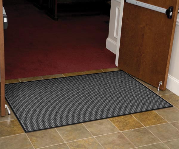 Fashionable grand entrance mat with slip resistant vinyl backing.